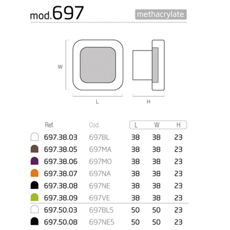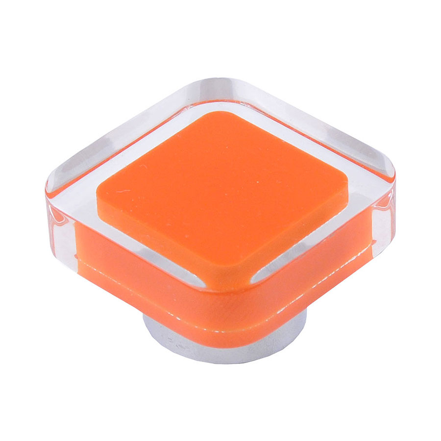Мебельная ручка форма кнопка квадратная коллекция Детская модель 697NA цвет глянцевый хром, оранжевый пластик материал цамак, акрил производство Испания.