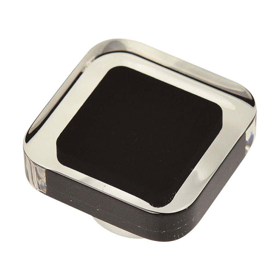 Мебельная ручка форма кнопка квадратная коллекция Детская модель 697NE5 цвет глянцевый хром, черный пластик материал цамак, акрил производство Испания.