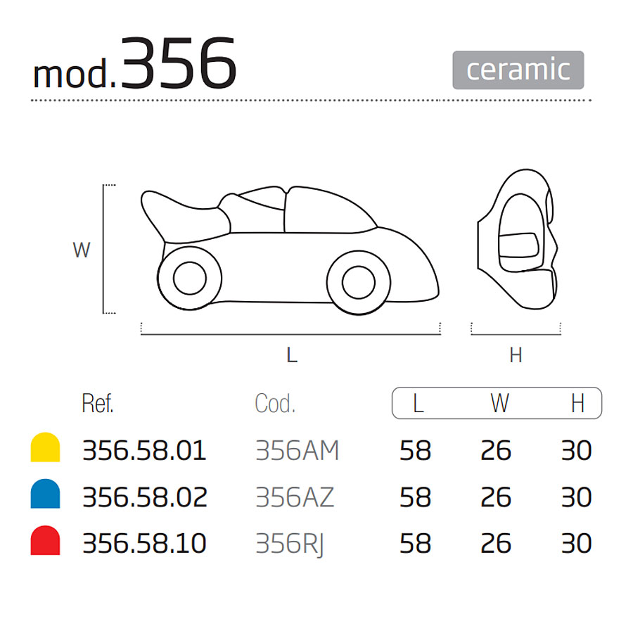 Мебельная ручка форма кнопка машина гоночная коллекция Детская модель 356RJ цвет красный материал керамика производство Испания.