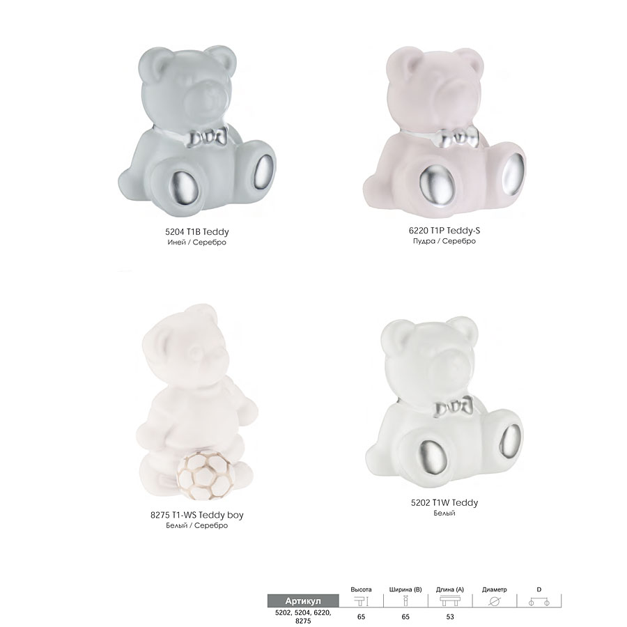 мебельная, ручка, детская, мишка, 6220 T1P Teddy-S, розовая, пудра, серебро