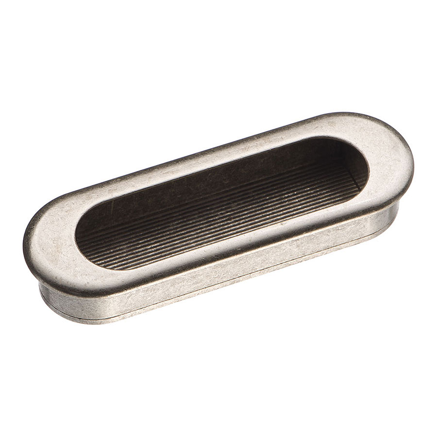 Дверная ручка врезная овальная с рифлением модель 15.113.75.16 цвет старое серебро материал цамак производство Италия.