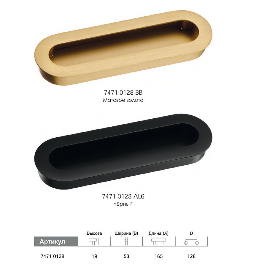 дверная, ручка, врезная, овальная, 7471 0128 AL6, черный
