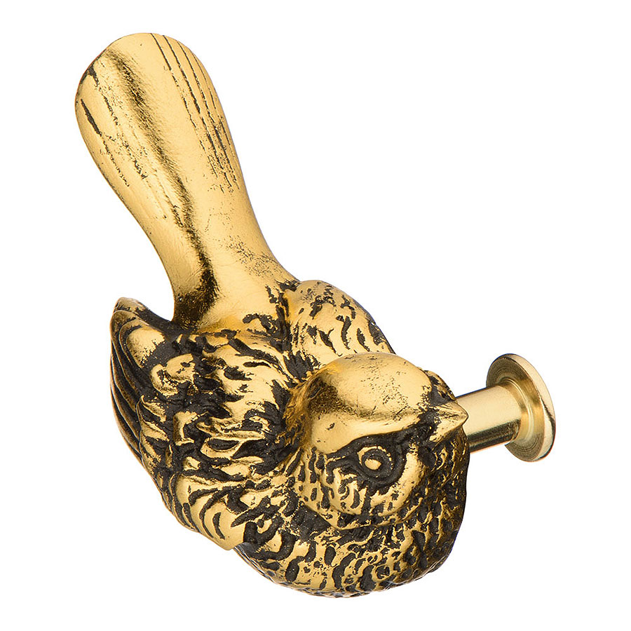 мебельная, ручка, кнопка, птичка, 90047-Б, бронза, золото, патина