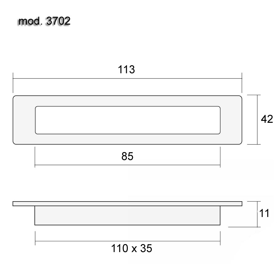 Дверная ручка врезная прямоугольная модель 3702-038 цвет никель материал цамак производство Испания.