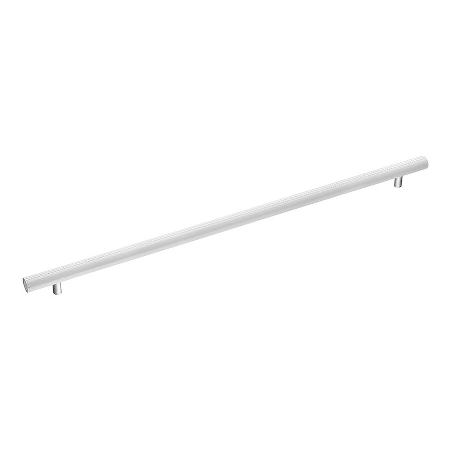 Мебельная ручка форма рейлинг коллекция Эксклюзив модель 7524.0544.021.082 отделка белая глянцевая кожа материал цамак производство Испания.