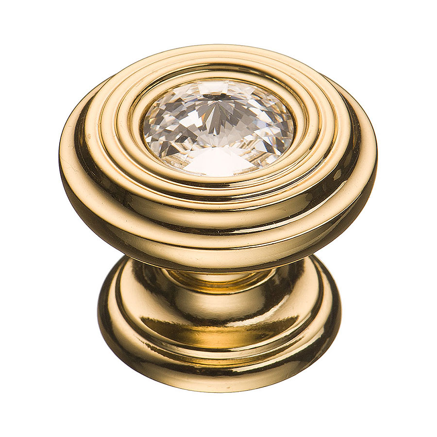 Мебельная ручка форма кнопка круглая с кристаллом модель 9953-100 отделка / цвет глянцевое золото, кристалл Сваровски (Swarovski) материал цамак производство Испания.