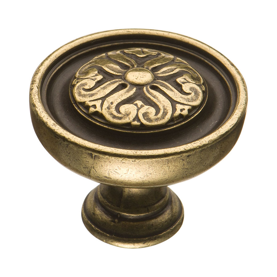 Мебельная ручка стиль классика форма кнопка круглая с орнаментом модель BU 009.35.12 цвет / отделка античная бронза материал цамак производство Италия.
