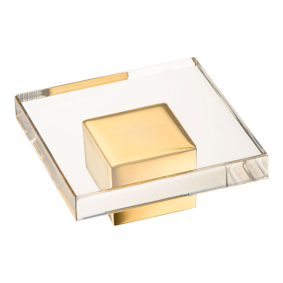 Мебельная ручка форма кнопка квадратная коллекция Модерн модель 15.383.55.19 цвет / отделка глянцевое золото, органическое стекло, материал цамак, производство Италия.