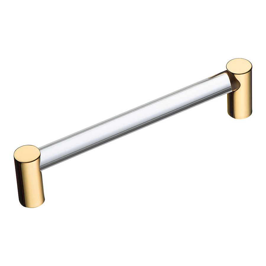 Мебельная ручка форма рейлинг коллекция Геометрия модель BU 016.128.19 глянцевое золото, прозрачное стекло материал цамак, органическое стекло производство Италия.