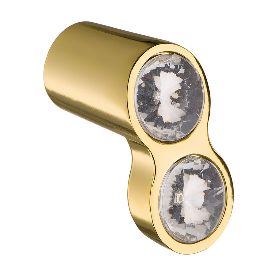 Ручка кнопка 92-Gold цвет глянцевое золото, кристаллы горный хрусталь длина 35 мм