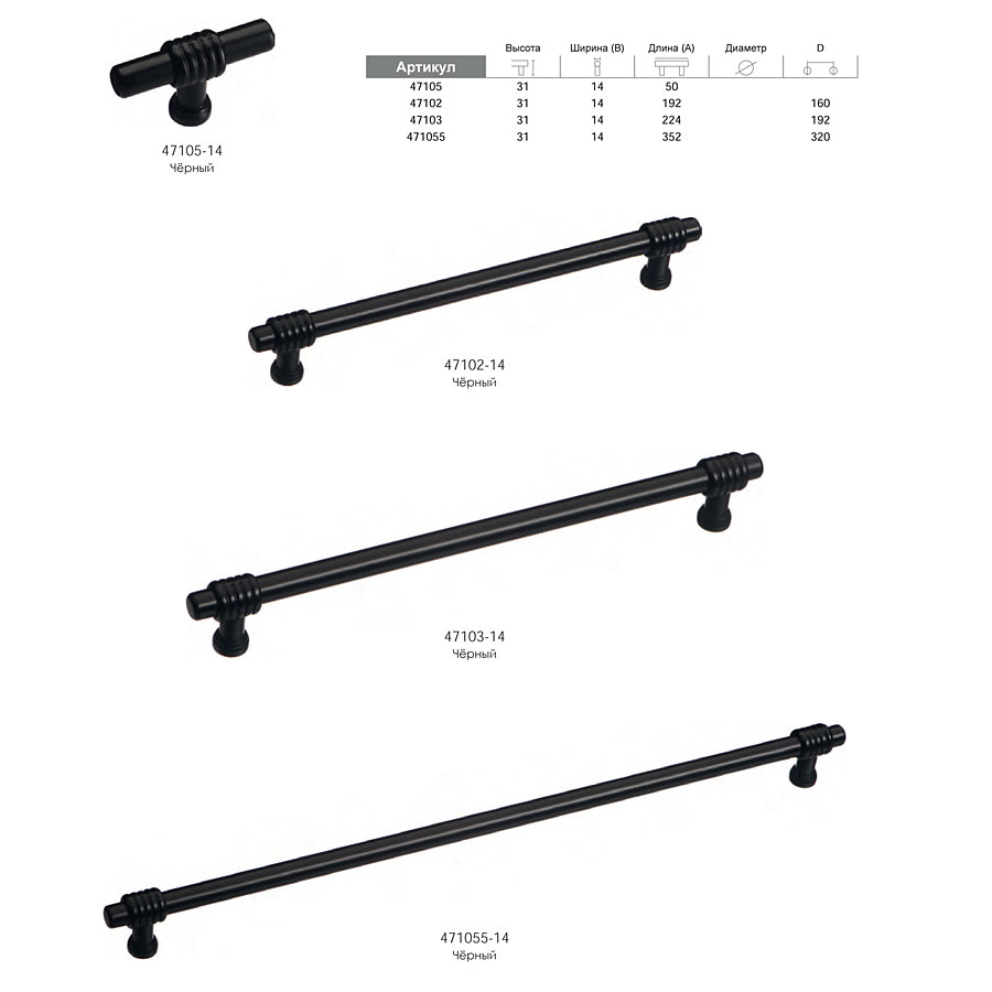 мебельная, ручка, классика, рейлинг, 47102-14, черный, матовый