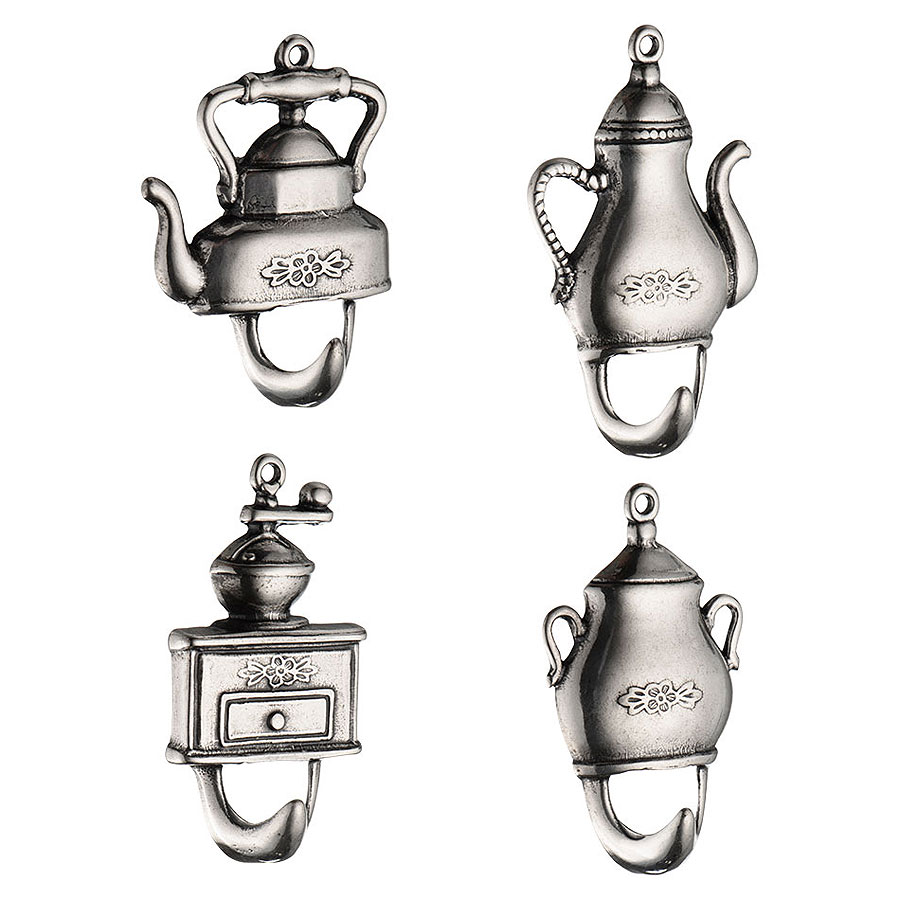 Крючки для кухни набор 4 штуки форма посуда стиль Классика модель 140087 цвет античное серебро материал латунь производство Италия.