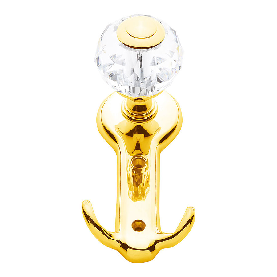 Крючок мебельный двухрожковый модель 0437-030 отделка / цвет глянцевое золото 24К, кристалл горный хрусталь, материал латунь производство Турция.