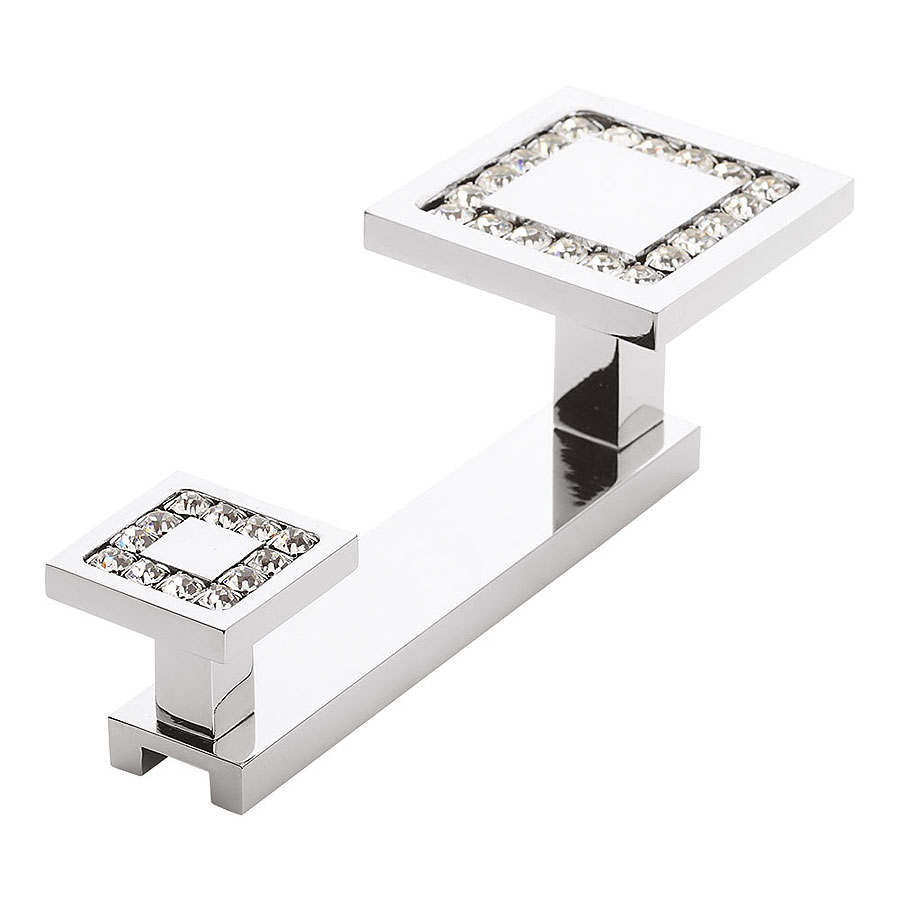 Крючок мебельный 0471-005-2 цвет глянцевый хром кристаллы Swarovski двухрожковый 135 мм