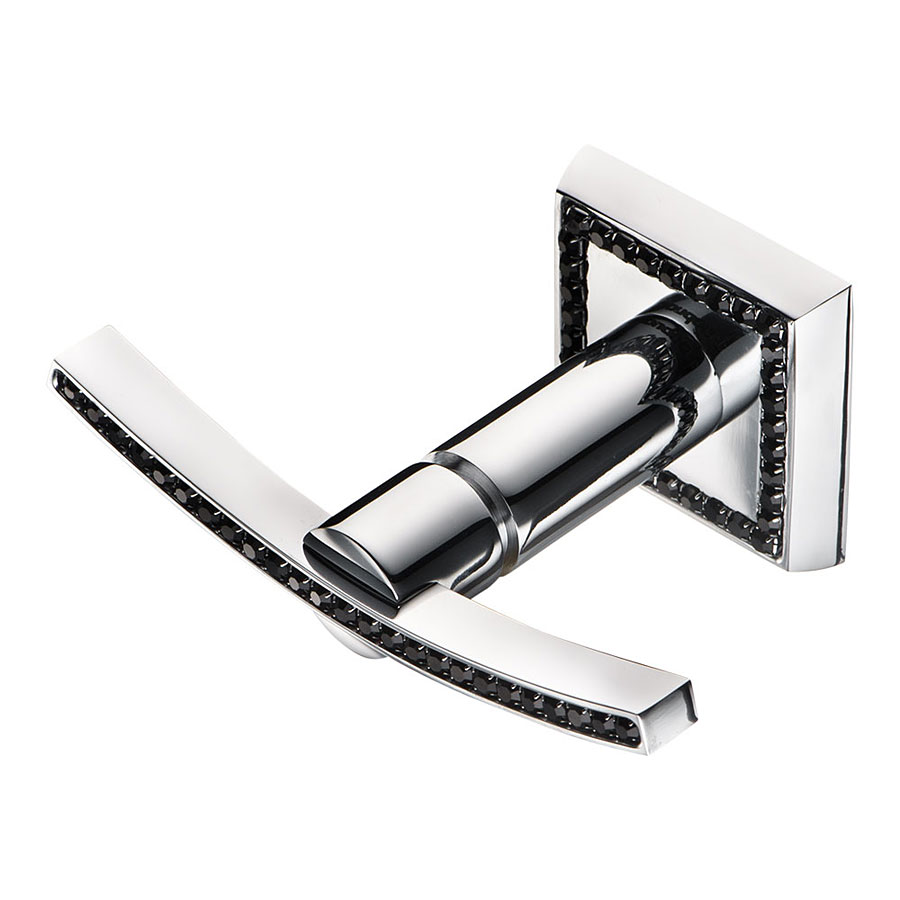 • Крючок мебельный 3506-2-75-005 BLACK цвет глянцевый хром, черные кристаллы Swarovski однорожковый длина 120 мм