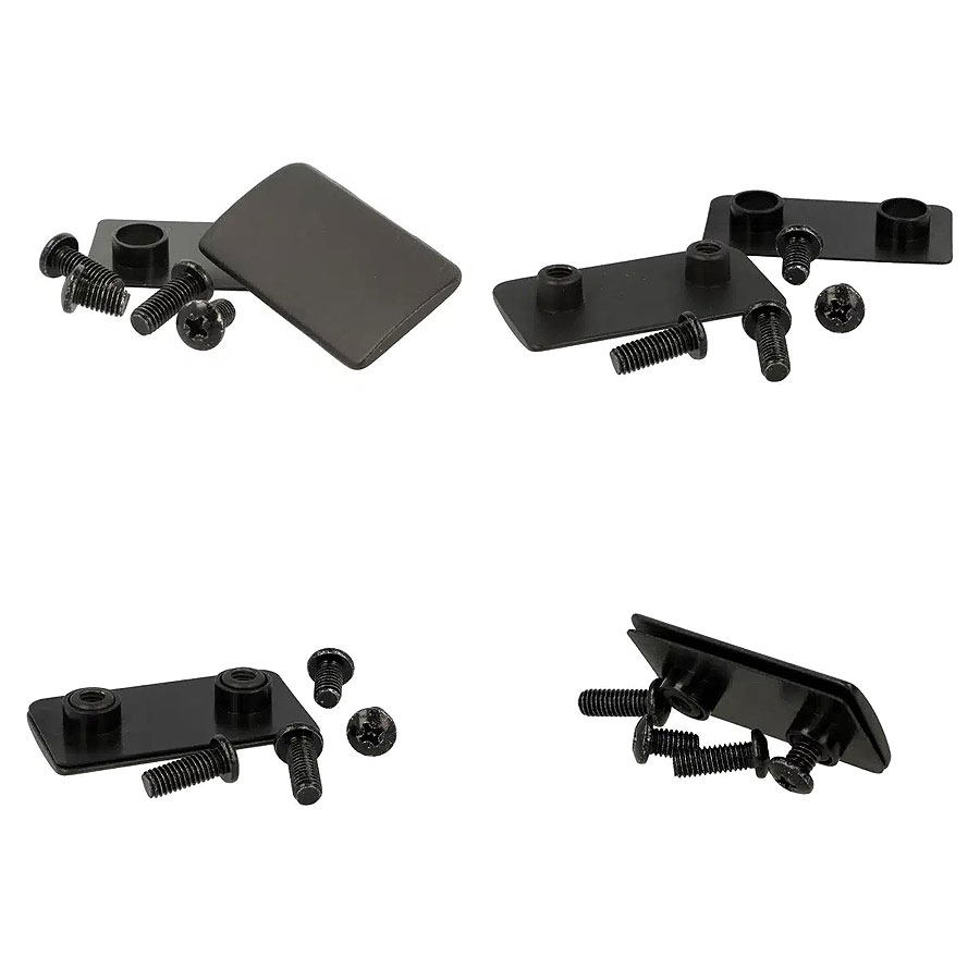 Передняя крышка "Easy", крепление для стеклянной двери, сплав цинка и алюминия, 55x30 мм, черный, в комплекте: 2 черных винта из нержавеющей стали M6x10 мм + 2 черных винта из нержавеющей стали M6x10x16 мм и 1 черная прокладка PA6 - 0,8 мм.