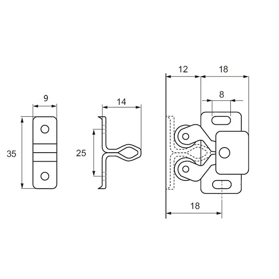 Мебельная (дверная) защелка роликовая двойная модель 22.01.510-0 оцинкованная материал сталь производство Дания.