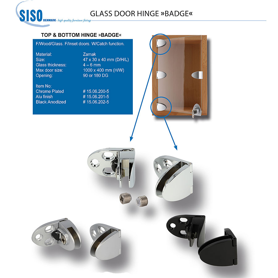 Петли для стеклянной двери мебельные модель BADGE 15.06.202-0 цвет отделки/покрытия черный материал цамак производство Дания.
