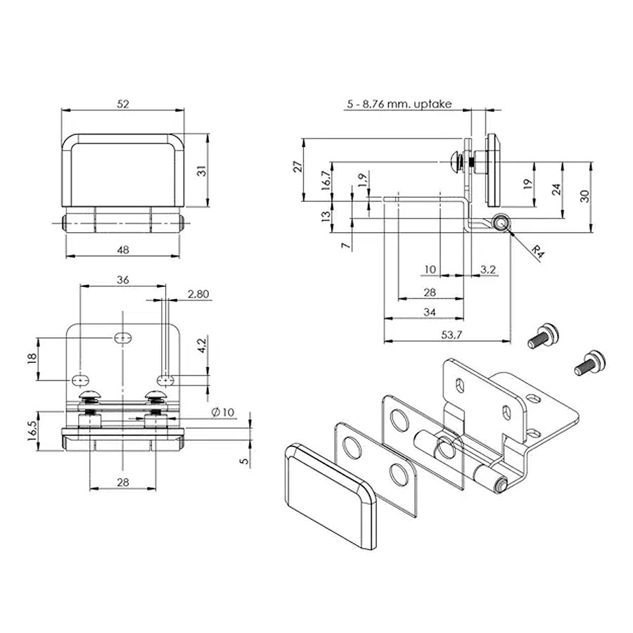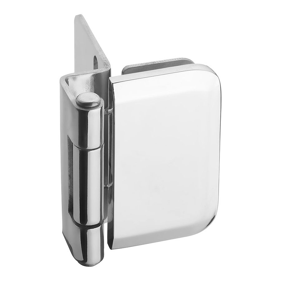 Дверная петля стеклянная дверь / деревянная боковина "Grace" полунакладная, цвет сталь SS304 полированная. Для крепления двери требуется сверление ø10 мм отверстия, толщина стекла 5 - 8,76 мм.