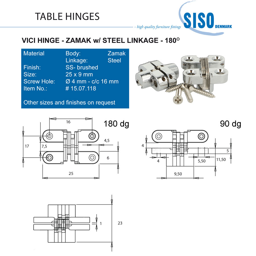 Петля потайная мебельная для деревянных дверей раскрытие 180 градусов модель 15.07.118-0 цвет отделки/покрытия цинк материал сталь производство Дания.