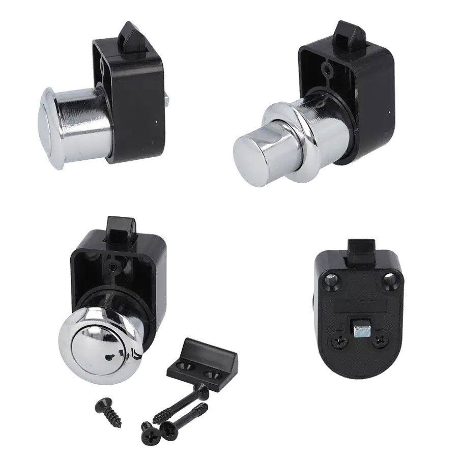 Замок мебельный с кнопкой 14.03.055-0 цвет черный, глянцевый хром