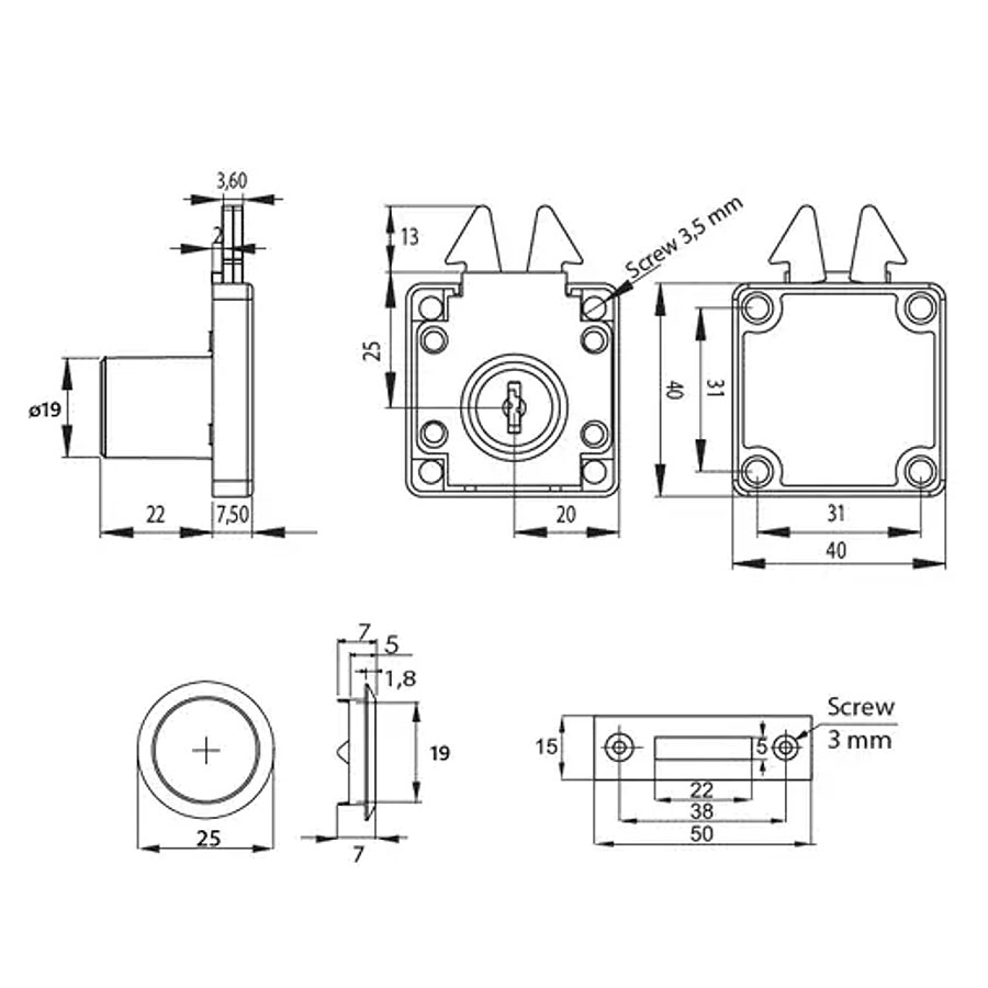 Диаметр: ø19 x 22 mm высота