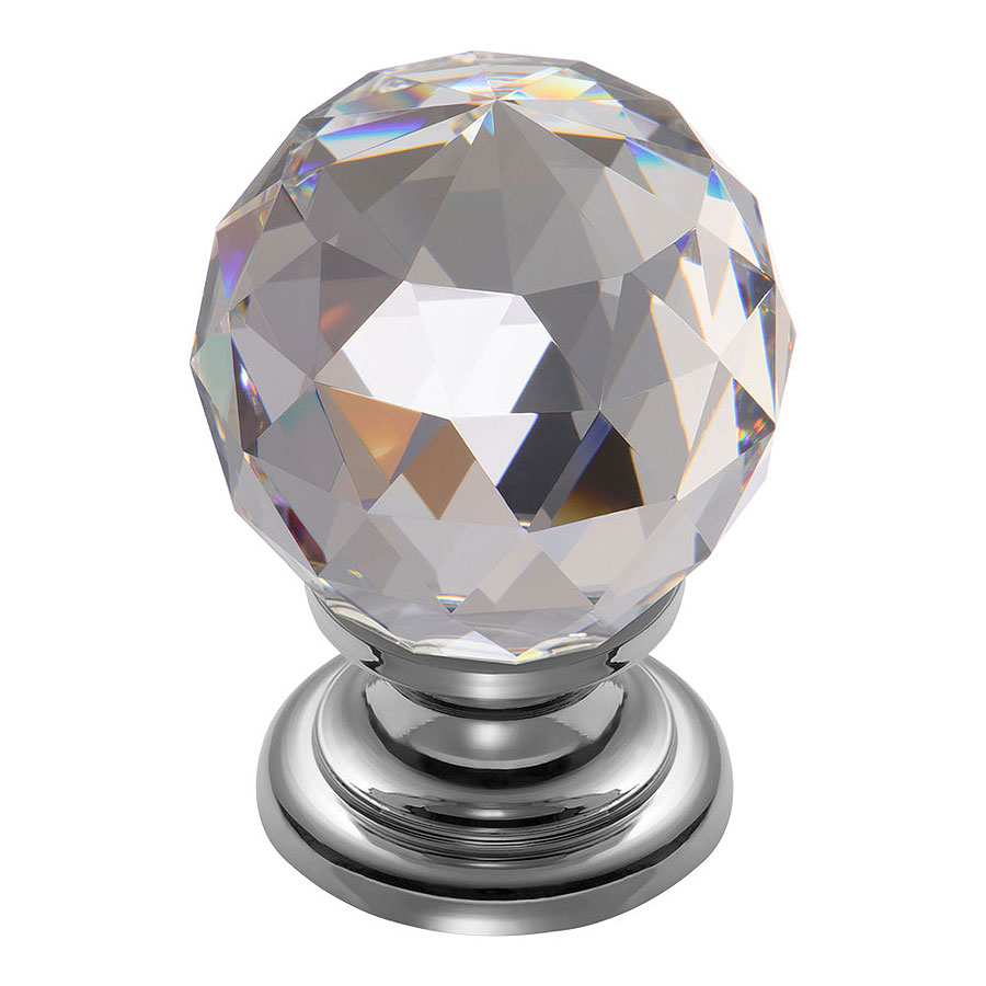 Ручка эксклюзив кнопка 9992-400 глянцевый хром прозрачный кристалл диаметр 30 мм