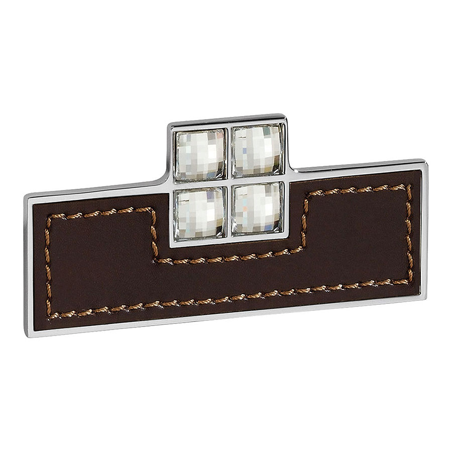Мебельная ручка форма скоба коллекция Эксклюзив модель 7147.0088.026.176 цвет глянцевый хром, натуральная коричневая кожа, кристаллы Сваровски (Swarovski™) материал цамак производство Испания.