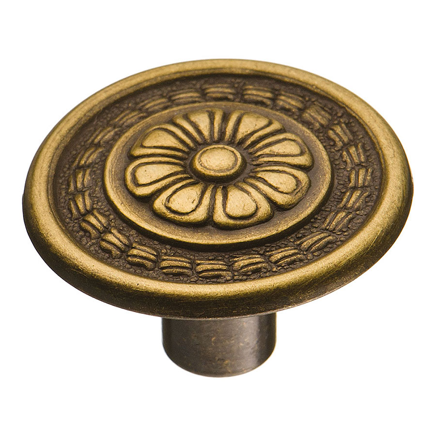 Мебельная ручка стиль классика форма кнопка круглая с орнаментом модель 1109.0030.001 цвет отделки/покрытия античная бронза материал цамак производство Испания.