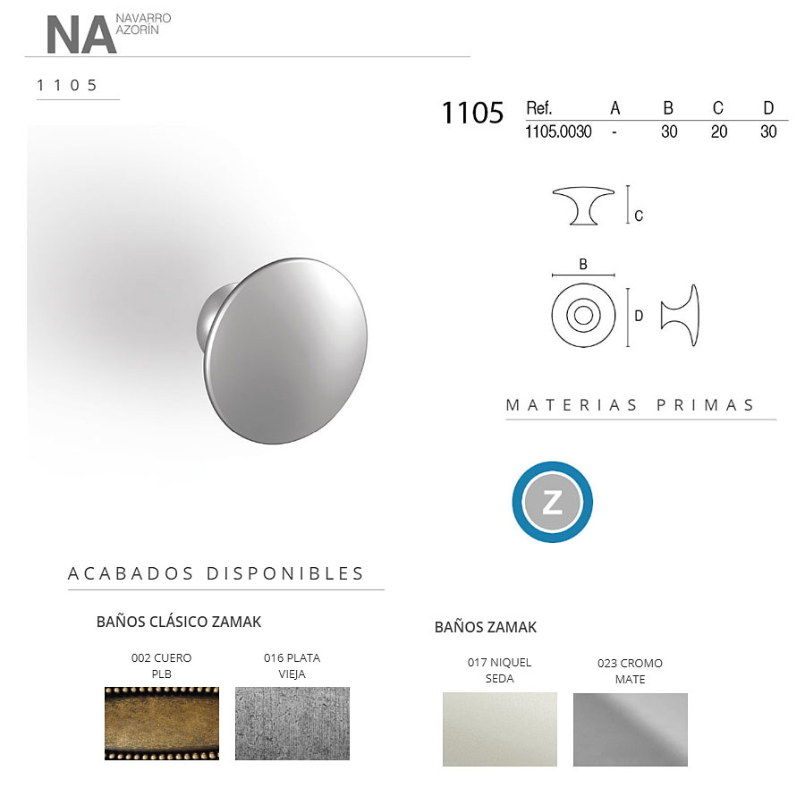 Мебельная ручка стиль классика форма кнопка круглая модель 1105.0030.017 цвет отделки/покрытия никель материал цамак производство Испания.