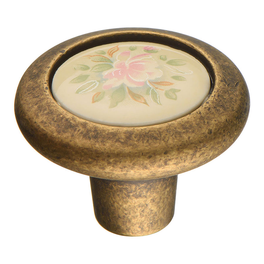 Мебельная ручка стиль классика форма кнопка круглая модель 9851-831 цвет старая бронза, керамика с рисунком материал цамак производство Испания.