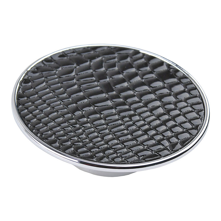 Ручка кнопка круглая 1026NE цвет глянцевый хром, черная кожа диаметр 85 мм