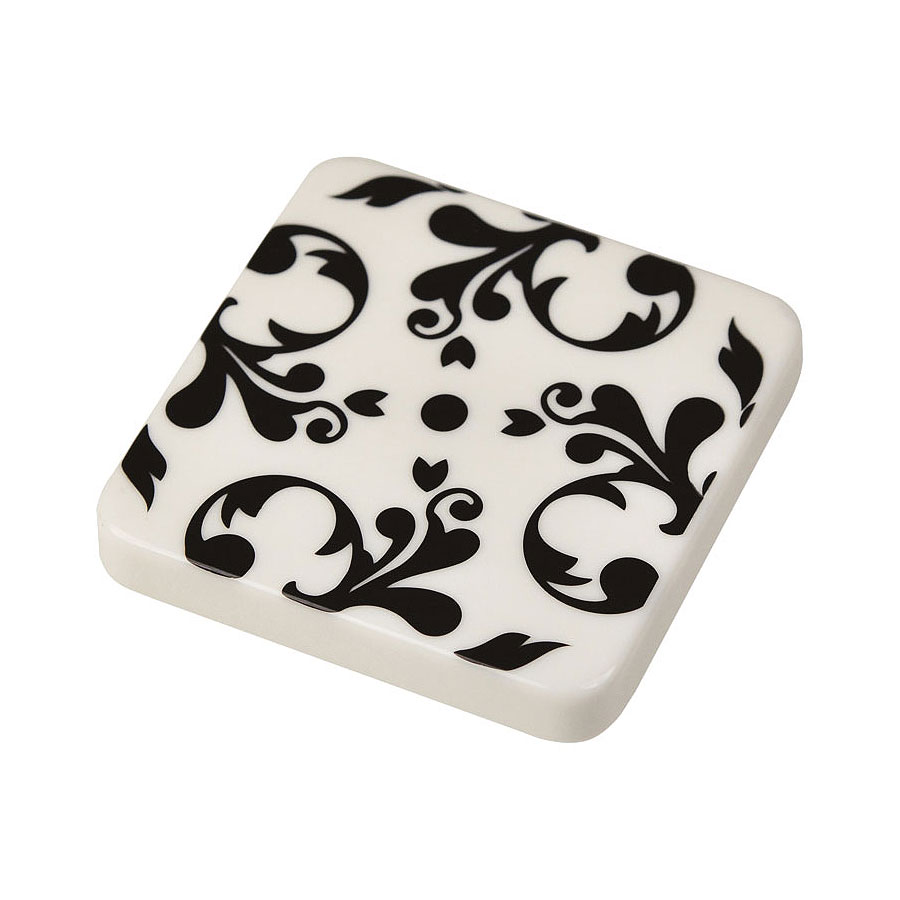 мебельная, ручка, фарфор, кнопка, квадратная, 699BL, белый, узор