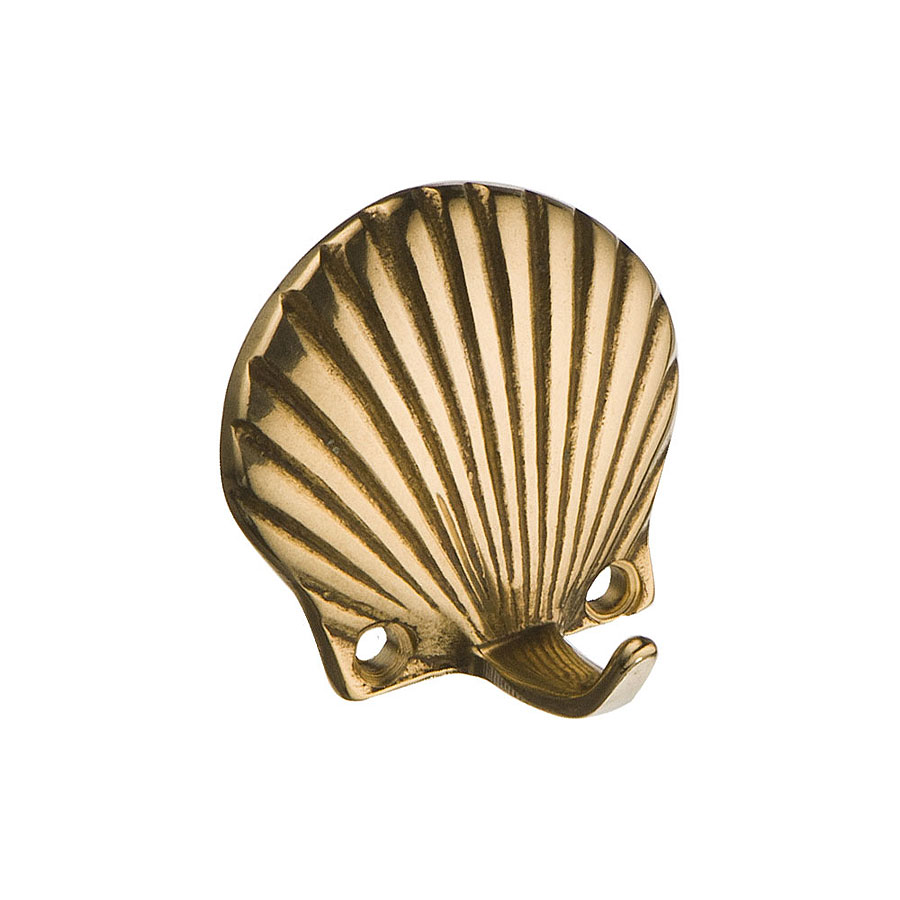крючок, мебельный, 00097, Раковина, глянцевая, латунь