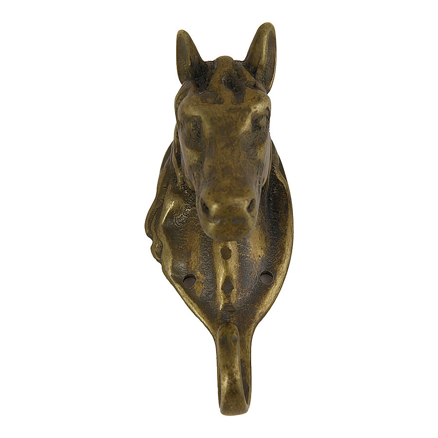 Крючок мебельный однорожковый модель 130096 Голова коня цвет отделки/покрытия античная латунь материал латунь производство Италия.