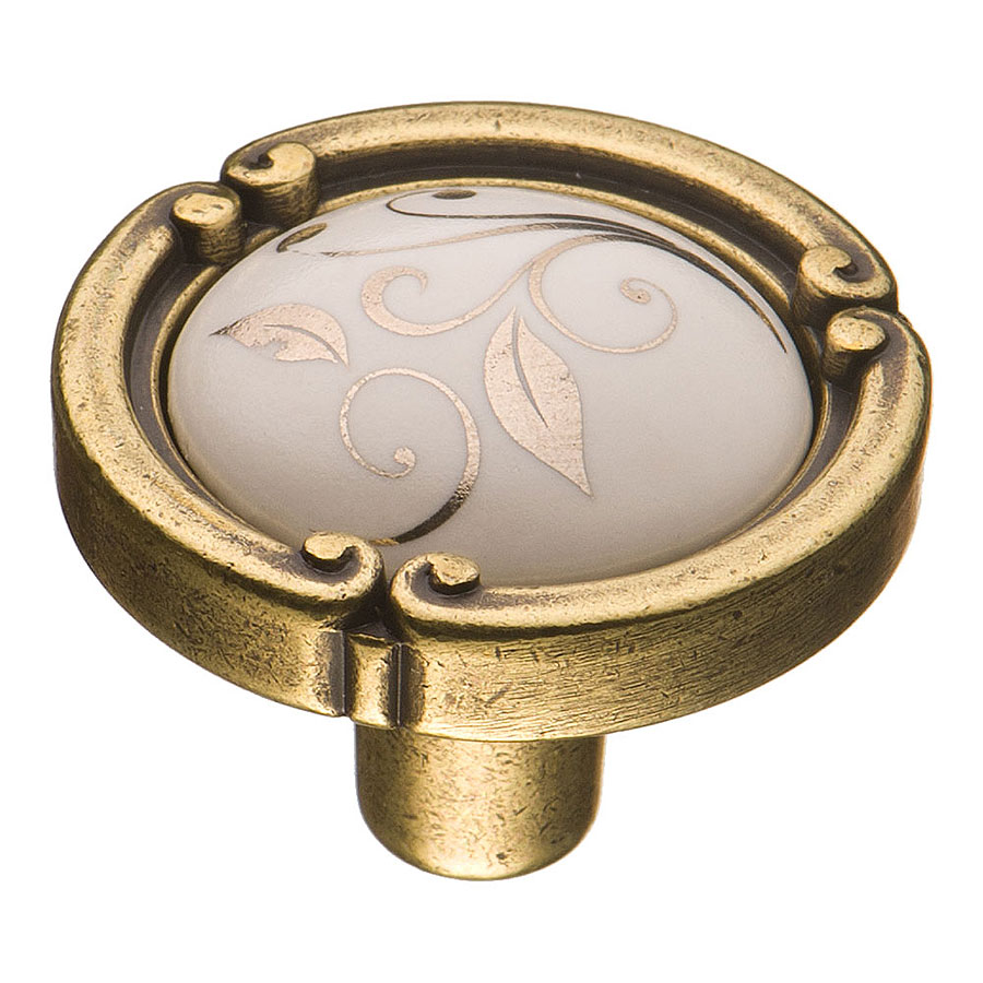 мебельная, ручка, кнопка, круглая, фарфор, керамика, 15.090.35.PO23W.12, бронза, слоновая кость