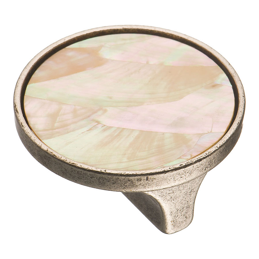 Ручка фарфор кнопка круглая 15.348.32 MP 05 16 старое серебро, перламутровая керамика 50 мм