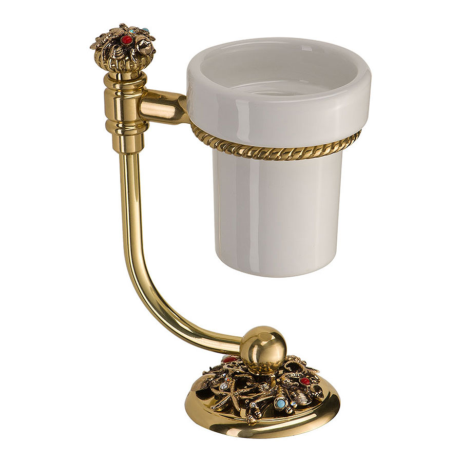 Стакан для зубных щеток на подставке PV1633/L цвет глянцевая латунь, белая керамика, кристаллы, латунь