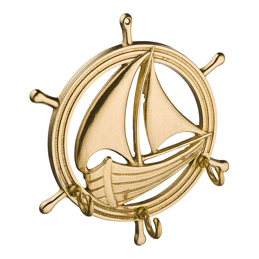Вешалка 00072 Парусник в штурвале глянцевая латунь длина 160 мм