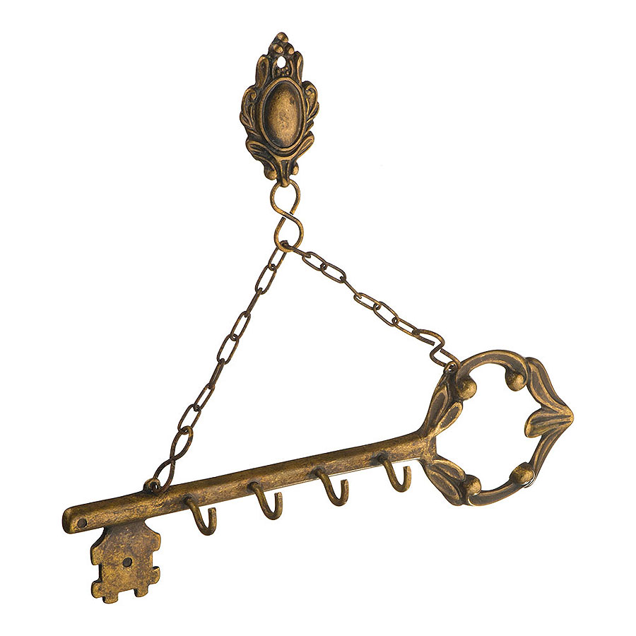 Вешалка настенная четыре крючка (ключница) модель 130094 Ключ на цепи цвет отделки/покрытия античная латунь материал латунь производство Италия.