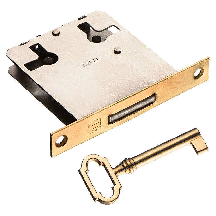 Мебельный врезной замок модель 01904 цвет золото, материал сталь производство Италия.