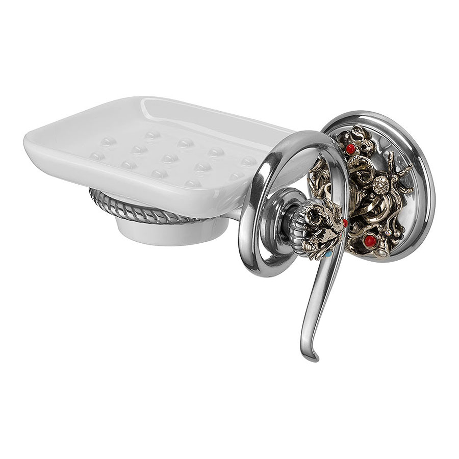 Мыльница (держатель для мыла) настенная эксклюзивная серия модель PV1607/K цвет старое серебро, белая керамика, кристаллы материал латунь производство Италия.