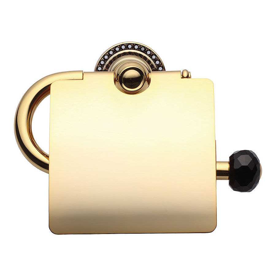Держатель для туалетной бумаги, с крышкой эксклюзивная серия модель 3514K-71-320 цвет глянцевое золото, черные кристаллы Swarovski материал латунь производство Турция.