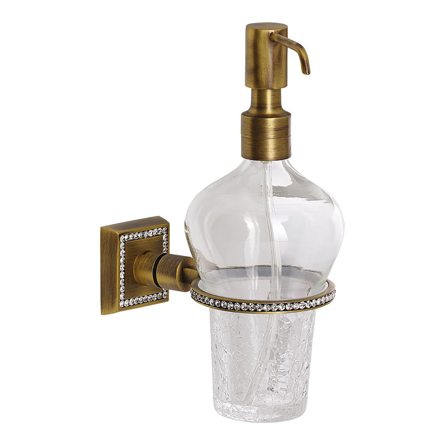 дозатор, для мыла, настенный, 3517-75-013, состаренная, латунь, стекло, кристалл