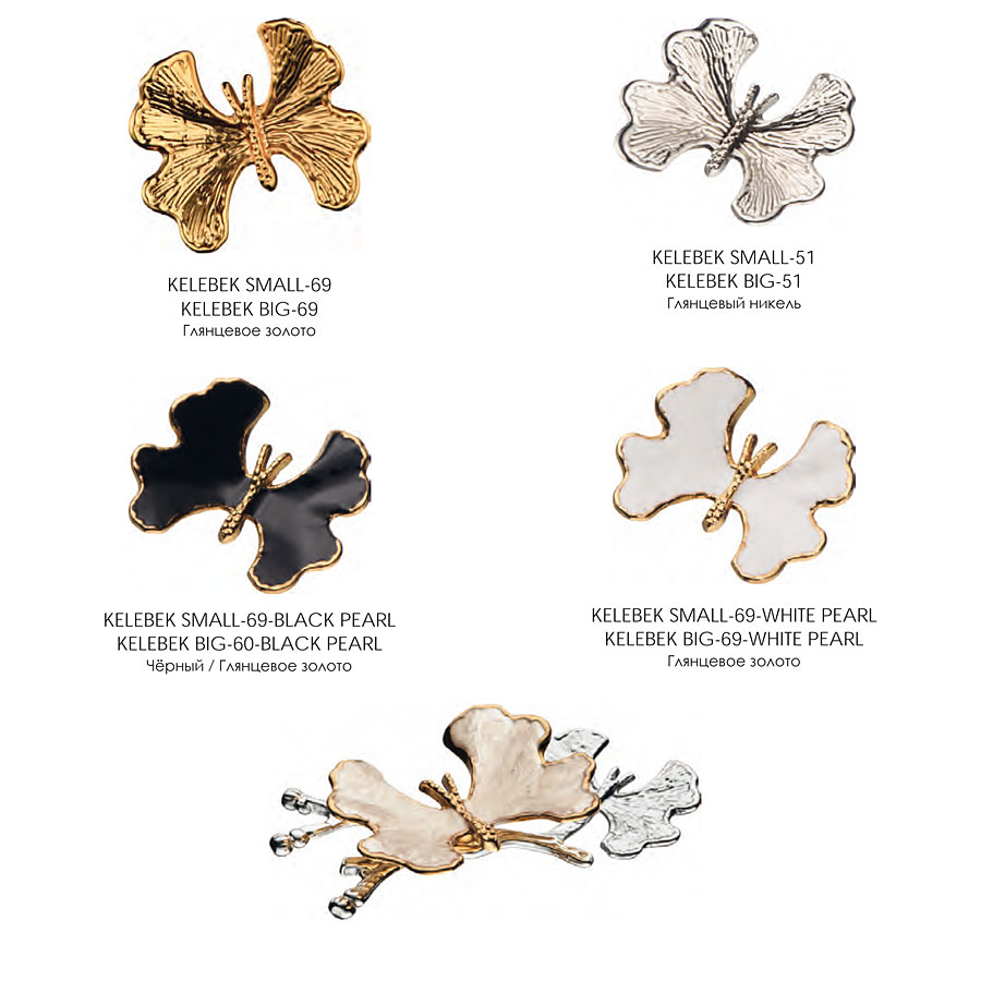 мебельная, ручка, фарфор, подложка, бабочка, KELEBEKLI DAL BIG 51, глянцевый, никель