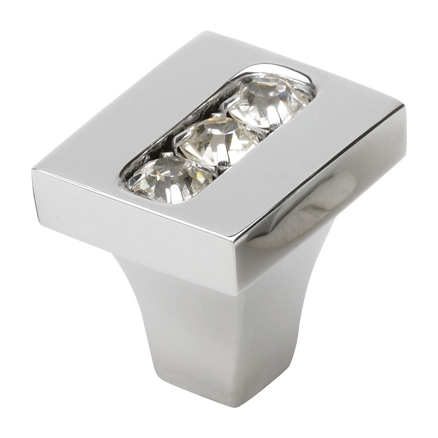 Мебельная ручка форма кнопка прямоугольная коллекция Эксклюзив модель 0771-005-1 цвет глянцевый хром, кристаллы Сваровски (Swarovski™) материал латунь производство Турция.