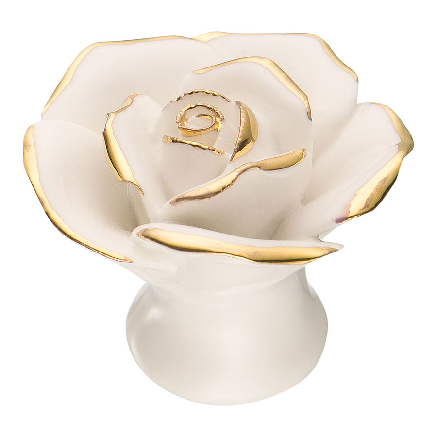 Мебельная ручка форма цветок роза коллекция Фарфор модель 3060-WHITE GOLD LINES цвет отделки/покрытия белый с золотом материал керамика ручная работа производство Турция.