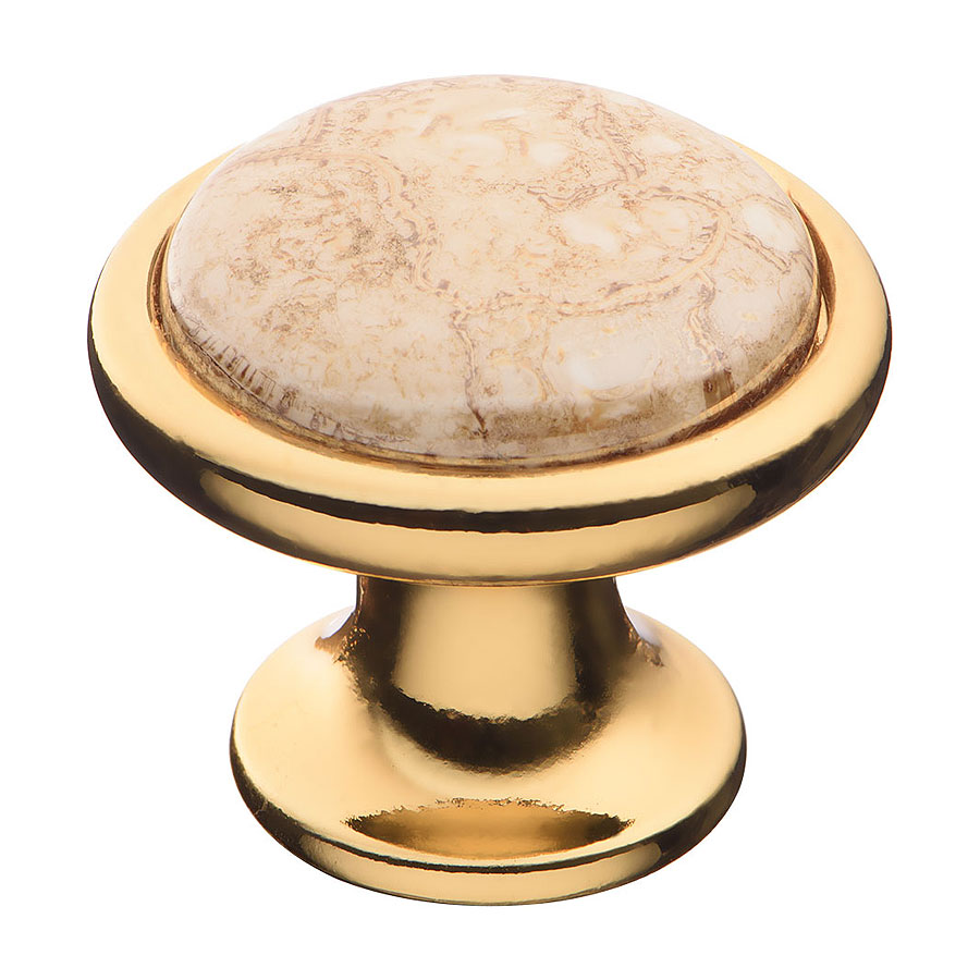 Ручка фарфор кнопка круглая 3008-69-L BROWN цвет глянцевое золото, коричневая керамика с орнаментом диаметр 35 мм