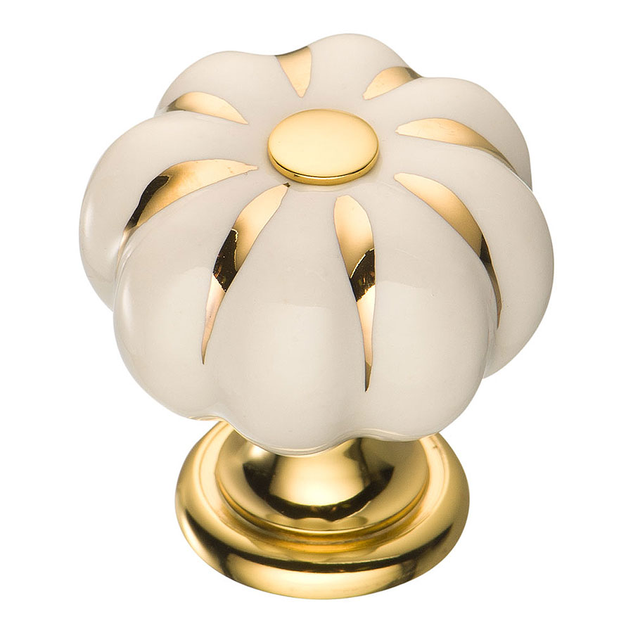 мебельная, ручка, фарфор, кнопка, 0719-030, глянцевое, золото, белая, керамика