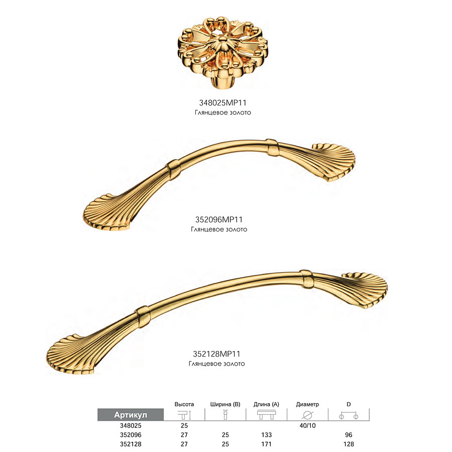 Мебельная ручка форма кнопка цветок коллекция Классика модель 348025MP11 цвет отделки/покрытия глянцевое золото материал цамак производство Турция.